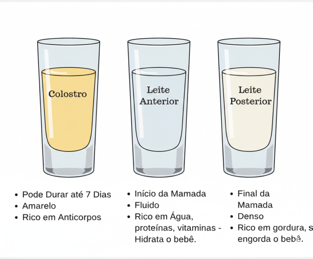 Inclusive, o leite materno vai mudando de cor consistência mesmo ao longo da mesma mamada.